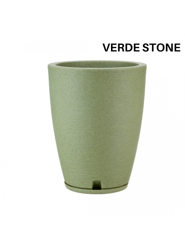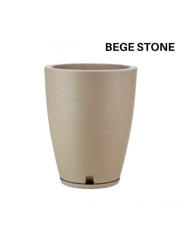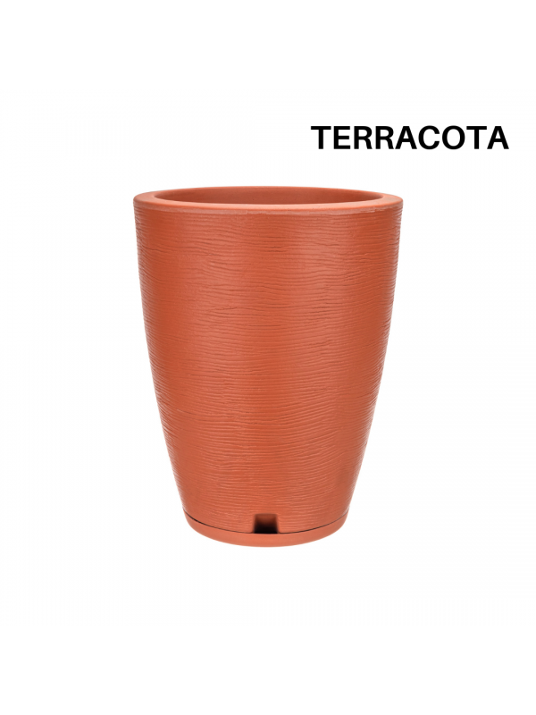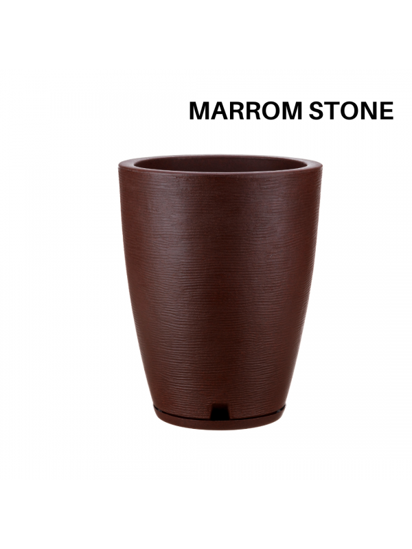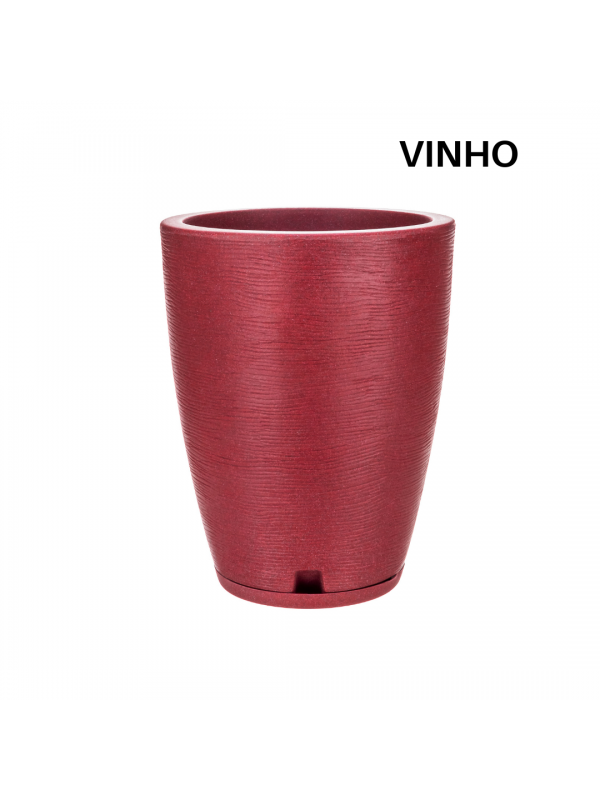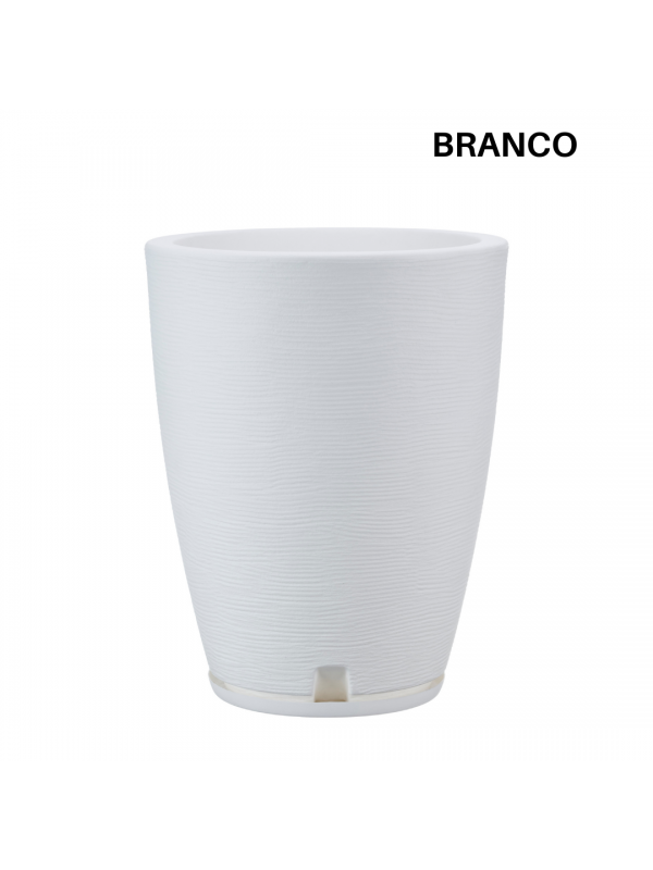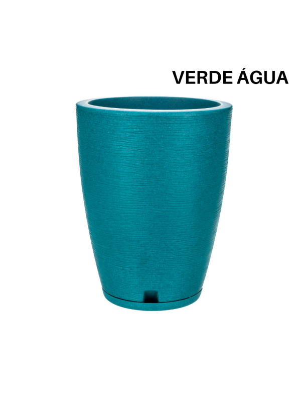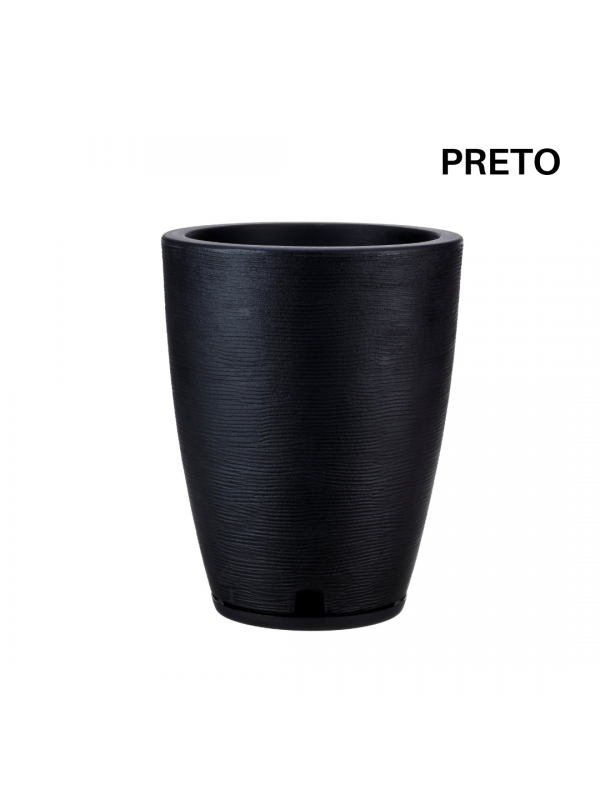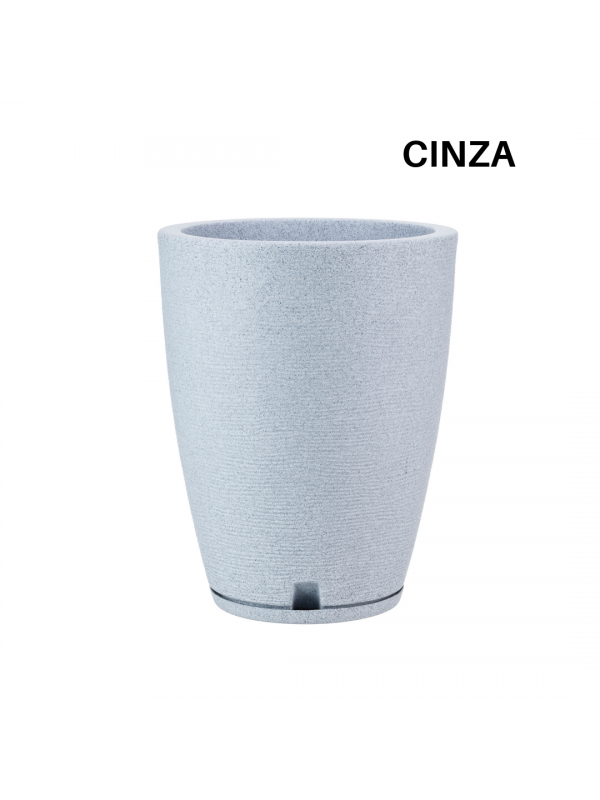 VASO AMSTERDÃ POLIETILENO GRAFIATO 29X44, POSSUI DISCRETO COLETOR DE EXCESSO DE ÁGUA E ACOMPANHA PRATO EXCLUSIVO.